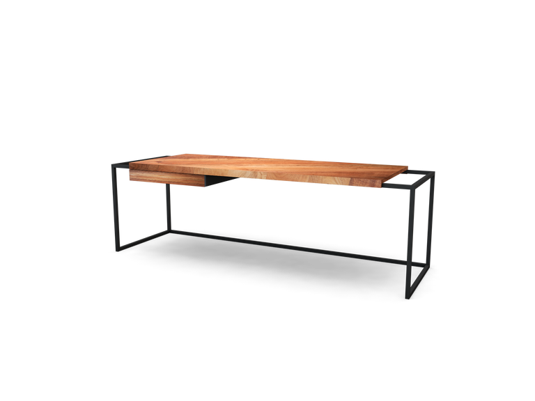 Het Frame-bureau is een authentiek meubel dat een luchtig stalen frame combineert met een massief hardhouten blad. De dunne lade onder het blad maakt de iconische uitstraling van dit bureau compleet.